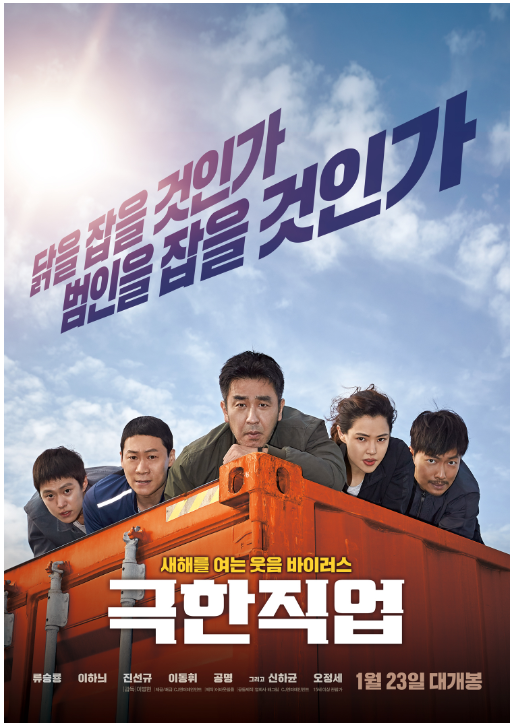 <극한직업>은 류승룡, 이하늬, 진선규, 이동휘, 공명까지 최강 케미를 자랑하는 짠내 폭발 마약반 5인방을 필두로, 구타 유발 악당 콤비 신하균, 오정세 그리고 김의성, 김지영, 송영규, 허준석, 양현민, 신신애까지 영화계 최강 감초 군단이 총 출동해 이병헌 감독의 전매특허인 캐릭터와 착 붙는 캐스팅을 완벽하게 완성하며 기대를 모은다.