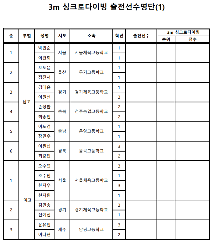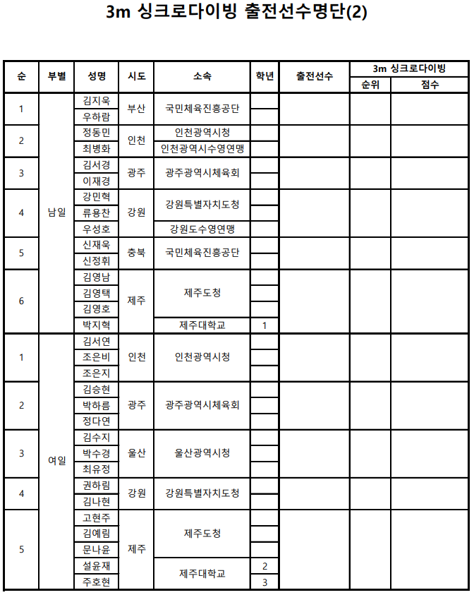 | 2024년도 대한 수영 연맹 주최 및 전국 수영대회 개최 현황 (0) | 2024.01.26 |