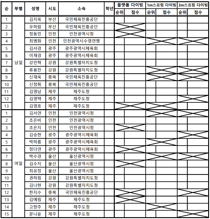 제104회 전국체육대회_다이빙 출전선수 명단