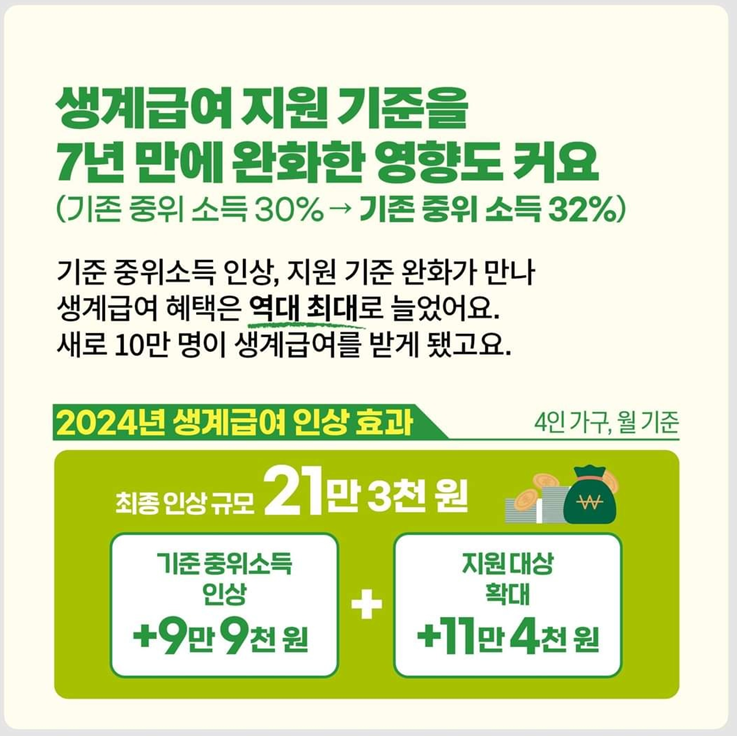 2024년 생계급여 역대 최대로 인상, 약자복지 강화 기조 반영